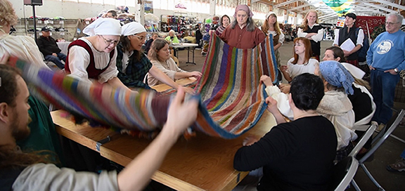 We are fortunate that the waulkers are coming to Shepherd’s Extravaganza on Saturday, April 12 at noon to demonstrate this ancient technique. The group, called Slighe nan Gaidheal is a Gaelic language and cultural society. One of the best ways to learn a language is with songs, and since the group also has a few weavers, they re-enact this fascinating activity with waulking songs, similar to sea shanties sung with a call and response. The caller sets the pace for the group to follow, slow songs first, then faster, and even a song for resting their hands.